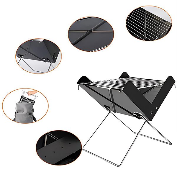 This X-shaped folding grill stand has a majestic design and is easy to assemble and disassemble. Now you can easily reduce the storage space in the trunk of the car or picnic bag. Experience this unparalleled convenience of grilling for the first time and it will be your first choice for a picnic or outing.