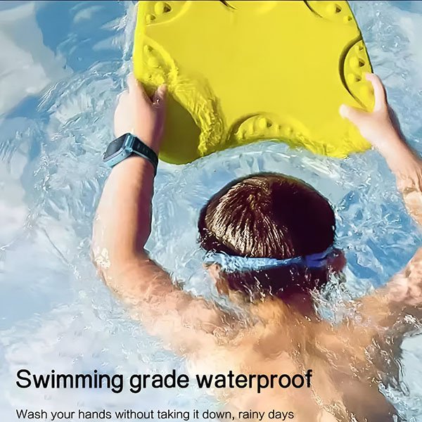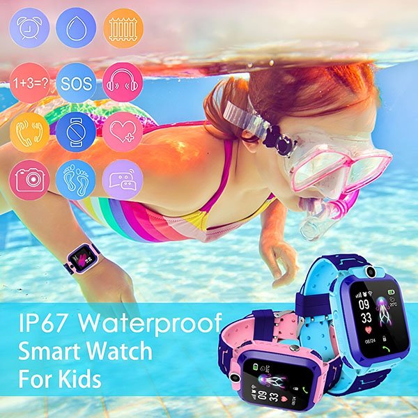 The watch is waterproof and made of durable silicone. It also has a touchscreen that allows children to safely use technology for the first time.